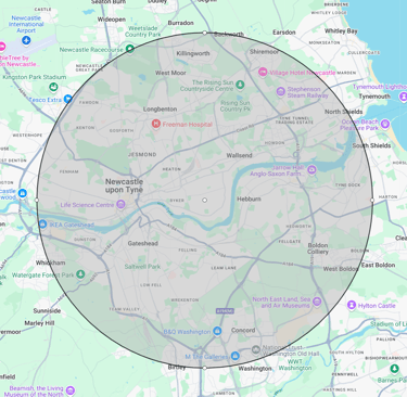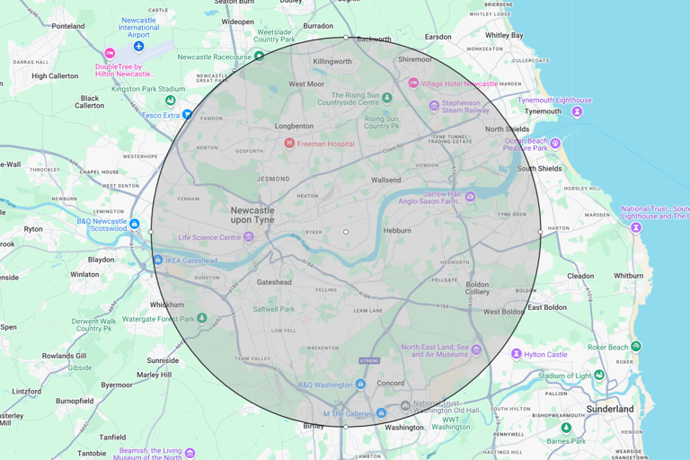Based in the North East, the marked area on the map provides a general guide to where 1:1 mobile sessions are available.